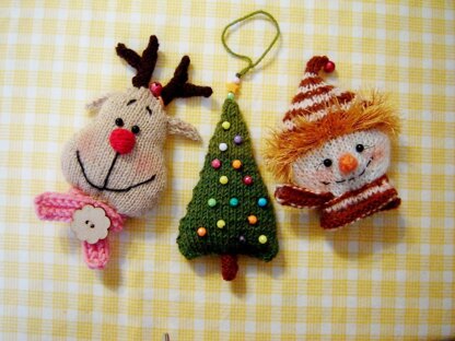 Christmas Decor Toys, Reindeer, Snowman, Christmas Tree knitting pattern