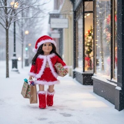 With the holidays on the way this is the perfect little outfit to make for your favorite doll lover. the boots, hat, skirt and jacket, done in a worsted weight yarn, and an eyelet trim or fake fur. You can add things to it, change the colors, so many options to this basic little outfit. Easy to read and follow directions.