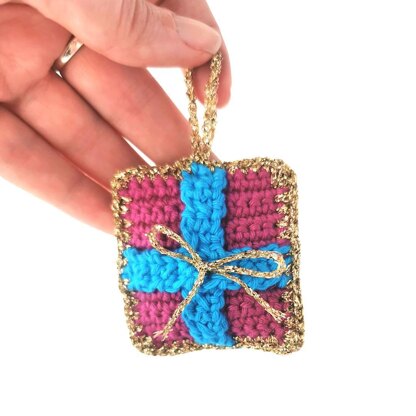 This crochet pattern makes a small Christmas Gift Ornament ideal for your Christmas tree.