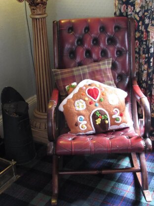 Knit yourself an irresistible gingerbread house cushion that looks good enough to eat.