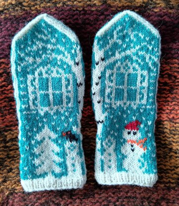 Christmas Morning mittens are a 56-stitch version of my previously published fingering weight version ["Christmas Eve Mittens"][1]. I designed them to provide a wider range of sizing for that popular design.