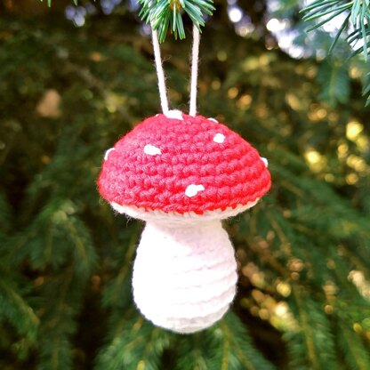 This wonderful crochet white and red mushroom ornament great for gifts or as a Christmas tree decoration!