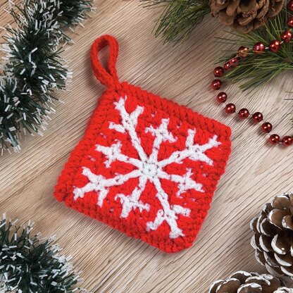 Made from two centre-out mosaic crochet squares, this festive ornament is both cute and practical — a tiny pocket perfect for holding small gifts, chocolates, or love notes. Hang it on your Christmas tree, use it as a reusable gift wrap, or add it to your holiday garlands for a cozy handmade touch.