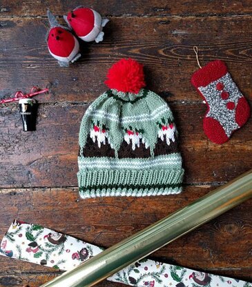 This fun + festive hat pattern is for a knit Christmas pudding beanie. It features fair-isle style repeating puddings! Unisex, because puddings are for everyone!