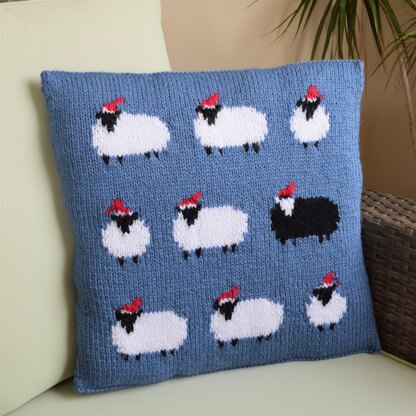 A striking and fun cushion to knit in Aran or Worsted (10 ply) yarn for your favourite chair or sofa for the festive Christmas Season. The knitting pattern gives full instructions and there are clear, large charts to follow for knitting the sheep.