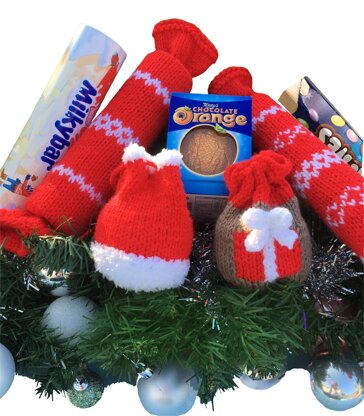 Here are 4 knitting patterns for Christmas gift bags. I originally designed them to fill with sweets or gifts and then modified them slightly so that they fit a chocolate orange or the tubes of smarties / buttons.