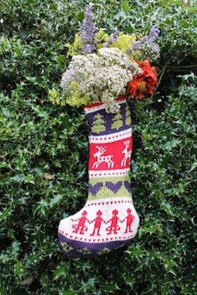 Christmas Eve is a special time for hanging up your stocking. If they are hand made they are even more special. This stocking is knitted in a traditional Fair Isle and the charts make the motifs easy to follow. Once you've made one all your family and friends will want them. You will need one ball of each colour to make the stocking.