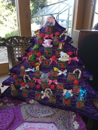 I started thinking about this pattern when my daughter was 3, she's now 27! I couldn't find what I wanted, a fairly simple knitted advent calendar with pockets that I could put little gifts and sweets etc in. So I have designed this using worsted/aran weight yarn although I used two strands (one double knit and one 4ply) to give a mottled effect in the sample I made.