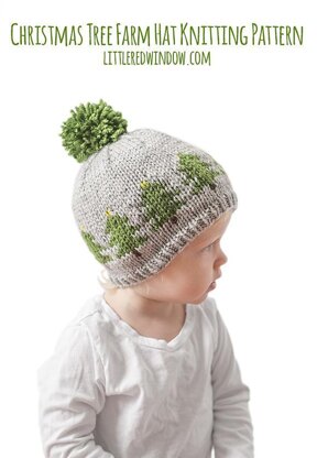 This adorable Christmas Tree Hat Knitting pattern reminds me so much of a Christmas Tree Farm filled with delicious smelling evergreen trees! This fun stranded pattern is knit in the round and the cute green Christmas trees each have a little gold star on top! This makes a perfect first Christmas hat!