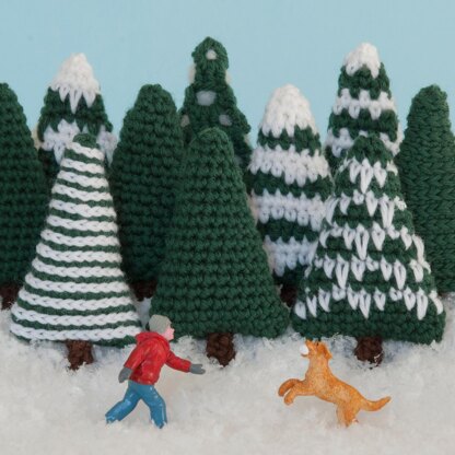 All trees are crocheted in the round. If using Cascade 220 yarn and a 4mm hook they are approximately 10cm (4 inches) tall. If you use a different yarn and/or hook the size may differ.