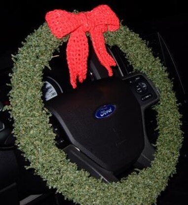 This is an easy quick project to dress up your steering wheel for the Christmas holiday! How fun to have your steering wheel look like a Christmas Wreath! This one is super easy and there is no seaming to the steering wheel involved!