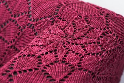 Chrysanthemum is a gigantic geometrical bloom with petals that multiply and expand from a single point. The design can be knit as a semi-circular shawl, circular shawl or blanket.