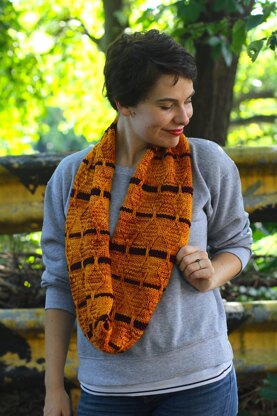 For cold weather, I wanted an accessory that was both big and bold; something that worked up quickly in heavy yarn and had enough crazy patterning to hold my interest while knitting. Here’s the result: bold colors, cables, stripes, garter stitch—all of my favorite design elements mixed into one cozy, chunky scarf. Wear it long to show off the details or double wrap it for extra warmth, you’ll want it with you until things thaw out in spring!