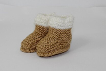 This is my Chunky Baby Fur Top booties knitting pattern. The knitting pattern provides full instructions for 4 sizes S (0-3 months),M (3-6 months) ,L (6-9 months)& XL (9-12 months). They are worked flat on 4 mm needles in any chunky (12ply bulky) yarn of your choice. They are very simple to make and there are step by step photos to help you along the way.