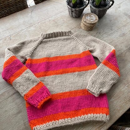 This sweater is knitted with a chunky weight yarn, making it quick to knit up. My pattern includes instructions for a range of sizes, ensuring a perfect fit for every body size. The sweater features raglan sleeves, which create a flattering silhouette and provide ease of movement. The seamless construction adds to the sweater’s overall comfort and wear ability. The sweater is knitted top-down. With clear, easy-to-follow instructions, this pattern is suitable for knitters of all levels, from beginners to experienced makers.