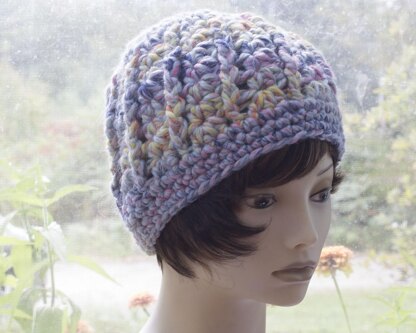 American crochet terms. This is an easy hat that works up very quickly with bulky yarn. The pattern is suitable for an intermediate crocheter or an adventurous beginner. The pattern calls for readily available Lion Brand Wool Ease Thick and Quick but another super chunky yarn can be substituted. The pattern is copyrighted by Judy Stalus 2021. The pattern is intended for personal use only. Reproduction in any manner, including electronic reproduction is prohibited. This means that printing multiple copies, electronic copying, scanning, posting to the internet or otherwise distributing in any form is prohibited. Please do not sell this pattern. You are welcome to sell hats made from this pattern