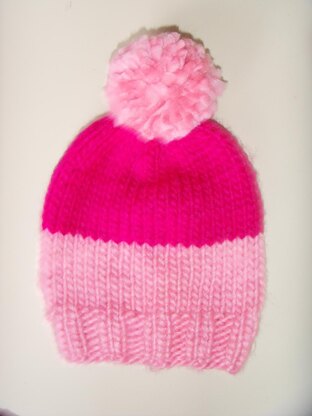 This pattern comes in two sizes; adult and child. The child size was initially aimed to fit a 3-5 year old, however given the ribbing used it can fit from all the way up to teens as well. This chunky simple beanie hat works up quickly within a couple of hours and is perfect for beginner knitters as only knowledge of very basic techniques is required.