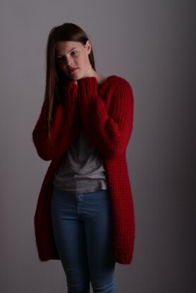 This beautiful cardigan will see you through from early Autumn to late Spring. Made of supersoft Plump Superchunky yarn it has all the benefits of a chunky knit, but is floaty and light so doesn’t weigh you down. Perfect to throw on when there is a chill in the air, or layer up with when it’s freezing! The sizes are really generous – you don’t need to go up a size to get the baggy look – the size shown is a S/M and fits me (I’m 5’10” and medium build). The large would be far too big. The pattern shows you where you can shorten/lengthen to get the exact fit you want.