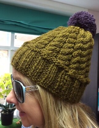 The hat is a great accessory for both men and women. This hat is knitted using yarn double with a simple rib border and cabling for the body of the hat. The hat will fit an average sized head. I have contrasted the colour for the pom -pom to make it more fun but one could equally well use the colour of the hat. The hat takes 3 balls of a standard guage DK yarn. You will need a cable needle for the cabling.