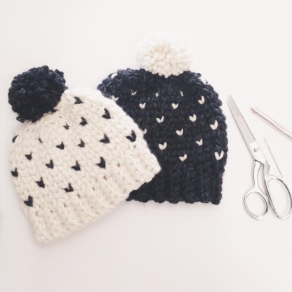 This chunky hat pattern has the "look of knit" with the ease of crochet. The fair isle design is so fun & colorful. Top it with a big Pom Pom for extra cuteness. This makes a perfect DIY gift.