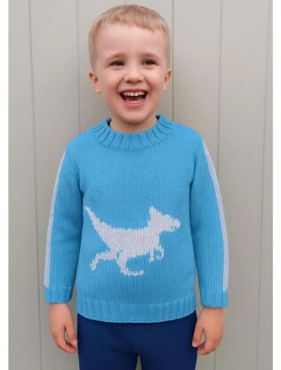 An easy and quick design to knit. The pattern includes colour coded sizes for ages from 4 to 11 years and a large full-page coloured intarsia chart for the Dinosaur.
