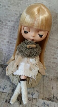 Here is a pattern to knit my Chunky knit capelet for your 12" Blythe doll. You will need some cotton tape yarn, approx 8 ply, DK, worsted weight - a wooden toggle button and 4.5mm knitting needles.