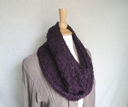 This quick and easy scarf is knit in a chunky yarn with a half‐twist Mobius finish.