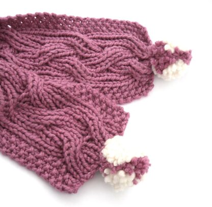 Versatile reversible chunky scarf. Cables are woven in and out to great affect. Available in 3 sizes, small - which drapes to blazer length, medium - which can be wrapped round once or large for a cozy and dramatic look. Simple written instructions and chart are included.