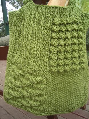 Short Rows with wraps are used to keep the different stitches growing at the same rate. If you're not comfortable using short rows, the panels could be knitted in two strips and then sewn together.