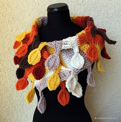 Chunky Crochet Scarf "Autumn Leaves" fast and easy crochet pattern with detailed written instructions in English, U.S. crochet terms, with a lot of photos for your convenience.