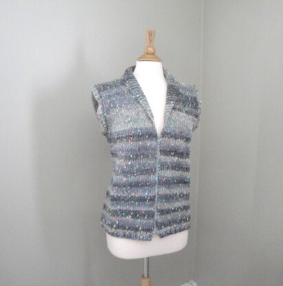 A cozy and comfortable vest with a shawl collar & in a chunky yarn it’s a quick knit!