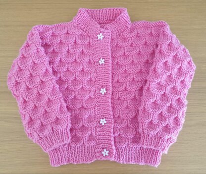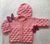 Size Guide: The pattern for a Hat and Cardigan has instructions to fit 16″, 18″, 20″ and 22″ chest.