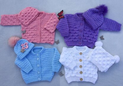 This is a DK pattern featuring 4 designs in four sizes on the one pattern – a must for Summer knits. Lovely to knit and I hope the colour coded instructions help. All cardigans have a matching hat. When Covid-19 hit the UK I wanted to offer customers value for money as I knew many were shielding and we were all in lockdown and I know it has kept many of my ladies busy during the long months.