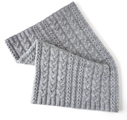 Ciao! is a cozy cowl, seamlessly worked in the round with columns of cables and eyelets.