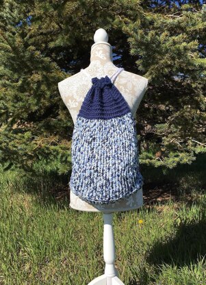 While trying to use up odds and ends of a yarn stash, I created a fun cinch sack backpack that is 13" w x 16" h.