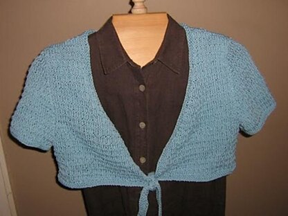Any Worsted Weight yarn is perfect for this cute, tie in the front, shrug/short cardi. It looks great over a sundress or over a tank top. It is the perfect clothing item for the coolness of Spring and the heat of Summer. It is written in 5 sizes, from X-Small to X-Large, 32.5" to 48.5" and worked at a gauge of 18 sts and 24 rows = 4" in Stockinette Stitch. This pattern can be purchased on the Knit Picks website, too.