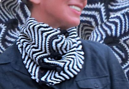 Cinetico (Kinetic) is a fitted cowl. With its dynamic play of black and white it reminds me of Opt (or Kinetic) Art. The illusion of curved zig-zag is obtained simply changing the place where to perform the decrease in a classical chevron pattern. So much movement added with this easy trick!