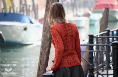 Construction - seamless - body worked flat from the bottom up, shoulders are joined with 3 needle bind-off - sleeves worked in the round from the top down (stitches picked up from the armholes, set-in sleeves with short rows)