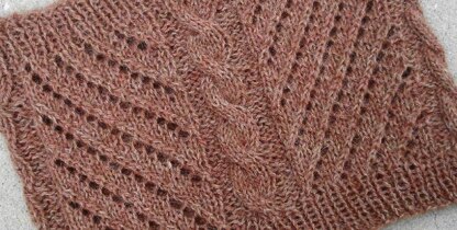 DIFFICULTY: Advanced Beginner. It incorporates some different elements that repeat. It’s a good project to learn combinations of lace and beginning cables.