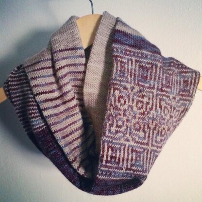 This versatile cowl begins with a provisional cast-on, is then knit in the round (forming a tube), and then the ends are grafted together to form a continuous loop. It can be worn as a single loop around your neck, or can be doubled for a cozier fit.This pattern is recommended for intermediate-level knitters who have experience stranding and working from charts. The sample pictured above was created using Tosh Merino Light (Antique Lace) and Tosh Twist Light (Coal Seam).
