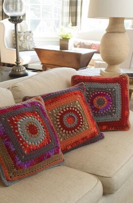 Circle in the Square Pillows in Red Heart Super Saver Economy Solids - LW3492