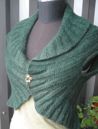 The bulky weight version of the circle vest knits up quickly on size 11 needles for a warm fall or winter vest/shrug. This vest is easy to knit and takes advantage of the stretchiness of ribbing to provide a flattering fit. Knit stitches on each side of the ribbing make a built in edge for the armhole.