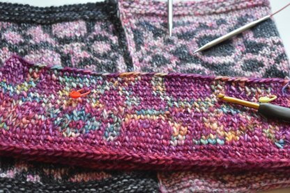 Circles around you is a lighthearted, fun and whimsy kind of make. It is a stranded colorwork cowl but it is different than most cowls worked with stranded colorwork as it is worked flat in two panels then seamed together. This was organic as I started working I wondered how the pattern would look if I inverted the colors so t his lead to idea of having the colors inverted on the other side and naturally working a separate panel which would have to be seamed I LOVE IT!! I think you will too!