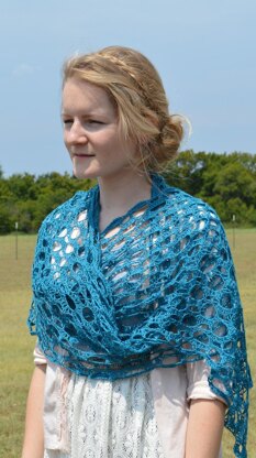You have the option to make a scarf with one skein of lace weight yarn 450-500 yards, or a shawl with one skein of 798 yards.