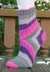 Circumvent is an experiment in sock construction that challenges the idea that socks have to be either cuff-down or toe-up. This pattern is designed to complement self-striping, self-patterning, or heavily variegated yarn, though it’s just as interesting in a solid or tonal.