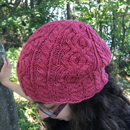 The pattern directs you to go up in needles size after the cabled ribbing. This will produce a relaxed fit top as shown in the photos. If you want something more fitted you may continue with the smaller cast on needles.