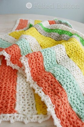 A colorful and happy fruit-striped blanket that can be worked up in any size you wish. Modify the colors to suit your style and decor! Want thinner or thicker stripes? Easy peasy. Want a blanket large enough for your bed? Easy peasy.