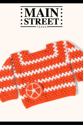 Just adorable! This sweet little sweater will be an instant hit, crocheted in Main Street Shiny & Soft Bright Coral and Just White with a darling little orange slice embellishment. In sizes 2-3 up to 8-9, you'll be hooking up these for all your kids' friends too! Worked in granny stripes, this is a super fast project that you can hook up over a weekend for a special little surprise for a special little satsuma!