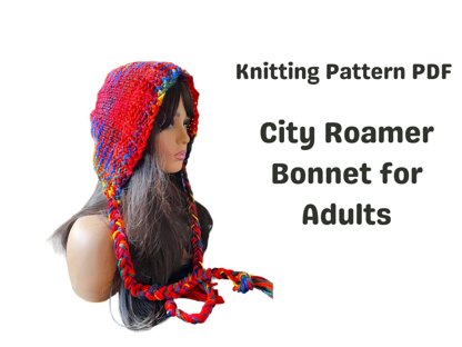 This item is a downloadable PDF knitting pattern for a fabulous adult sized hat, called the City Roamer Bonnet.
