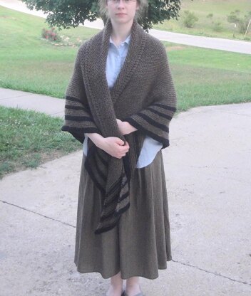 Inspired by Claire’s Carolina Shawl (Outlander), this large, cozy shawl is worked in squishy garter stitch for a wrappable hug - tie it around the back, wear a belt or use a pin.